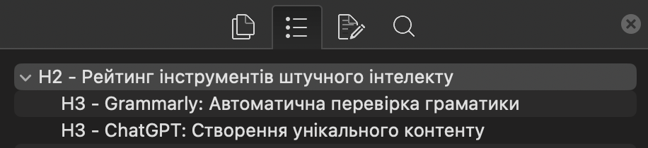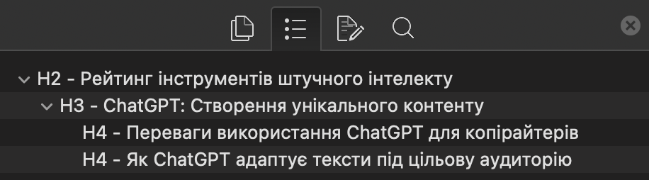Заголовки H4-H6 використовуються для ще більшої деталізації розділів. Наприклад, у розділі про інструмент ChatGPT можна вказати певні його особливості та переваги: