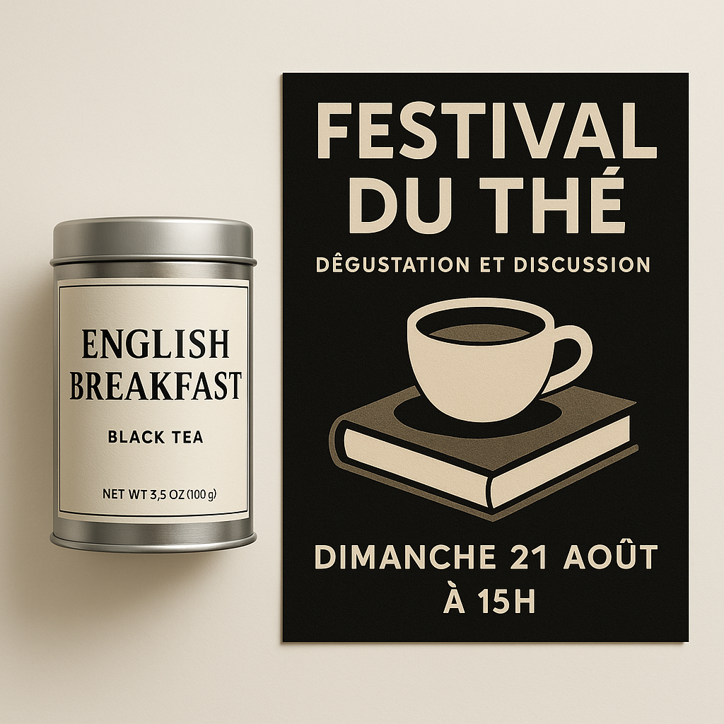 Результат вразив: акуратна композиція, білий фон, стильний постер із чашкою чаю на книзі, текст французькою — без жодних спотворень. Упаковка чаю виглядає фотореалістично, шрифт на банці чіткий і доречний. Усе — як у хорошій продуктовій рекламі.