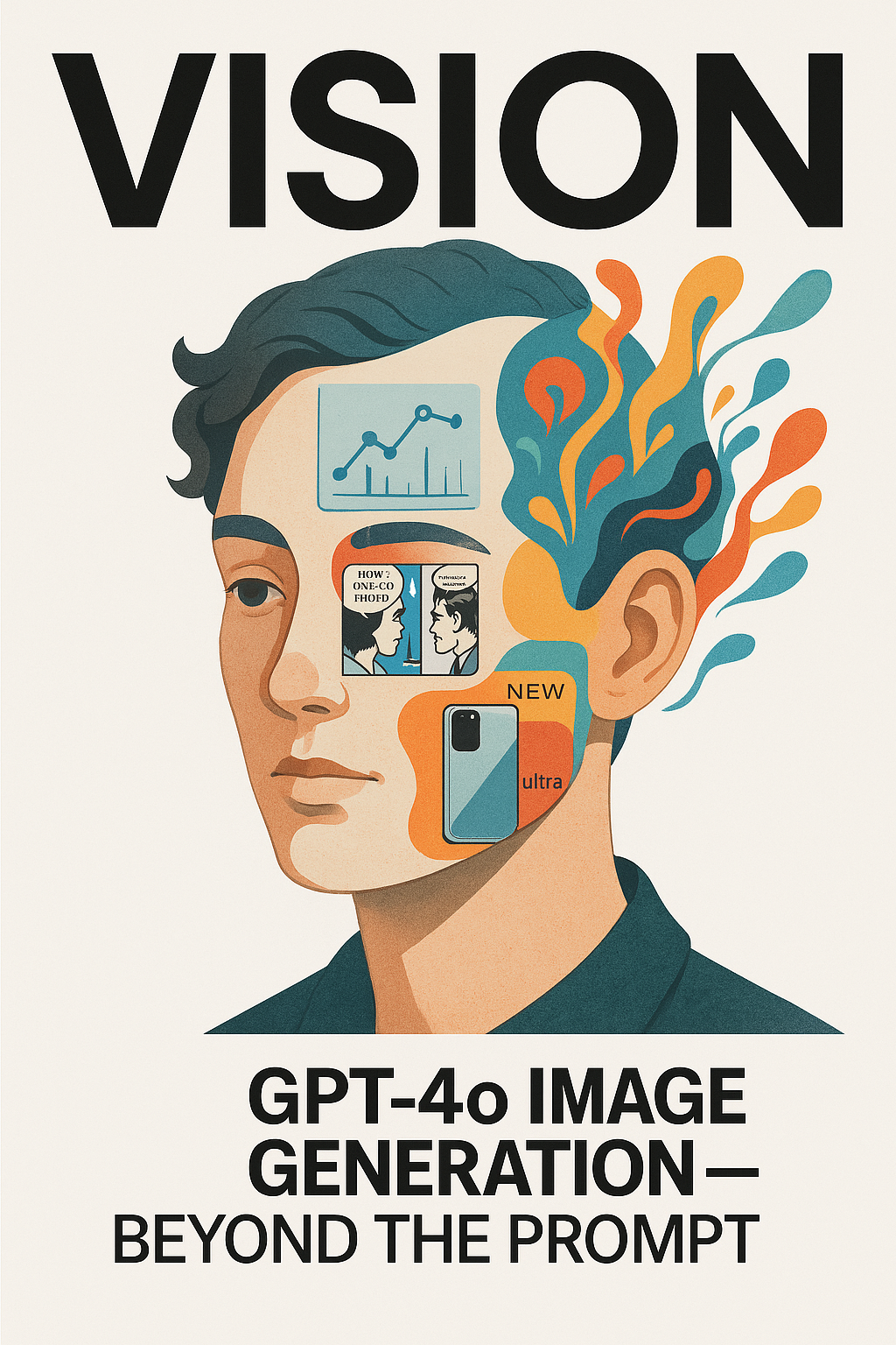 Результат виглядає як справжня концептуальна обкладинка — чистий фон, сучасна типографіка, влучна візуальна метафора. Зображення чітко передає ідею генерації як синтезу змісту та стилю. Це приклад того, як GPT-4o може працювати не тільки як інструмент візуалізації, а й як частина дизайнерського процесу.