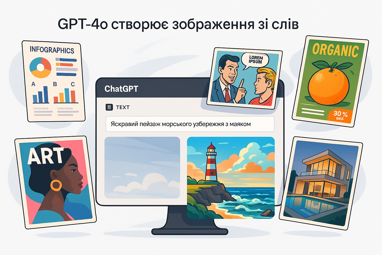 Оновлення GPT-4o від 25 березня 2025 року відкрило новий рівень можливостей для тих, хто використовує ШІ для створення картинок. У ChatGPT зʼявилася вбудована функція генерація зображень – більше не потрібно перемикатися на окремі інструменти чи використовувати DALL·E: достатньо описати потрібну сцену словами, і за кілька секунд ви отримаєте візуальний результат. GPT-4o не просто генерує ілюстрації — вона відтворює стиль, композицію, логіку сцени й контекст запиту, навіть якщо ви звертаєтесь до неї українською.